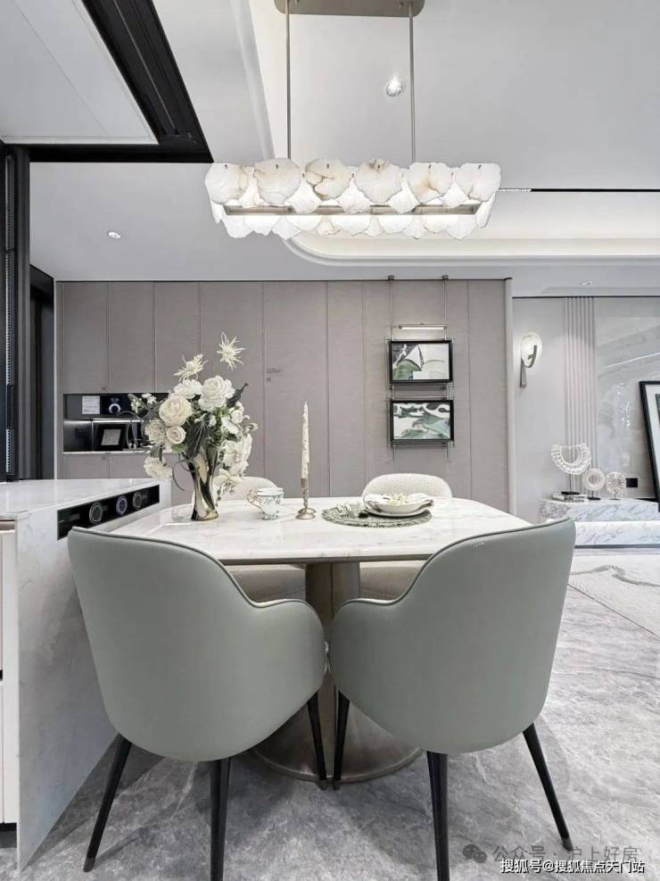 进门之后,恍若走进一幅立体绽放的画卷。地面采用了石材拼花,纹理如行云流水般舒展,在光影交错间勾勒出 低调的奢华。