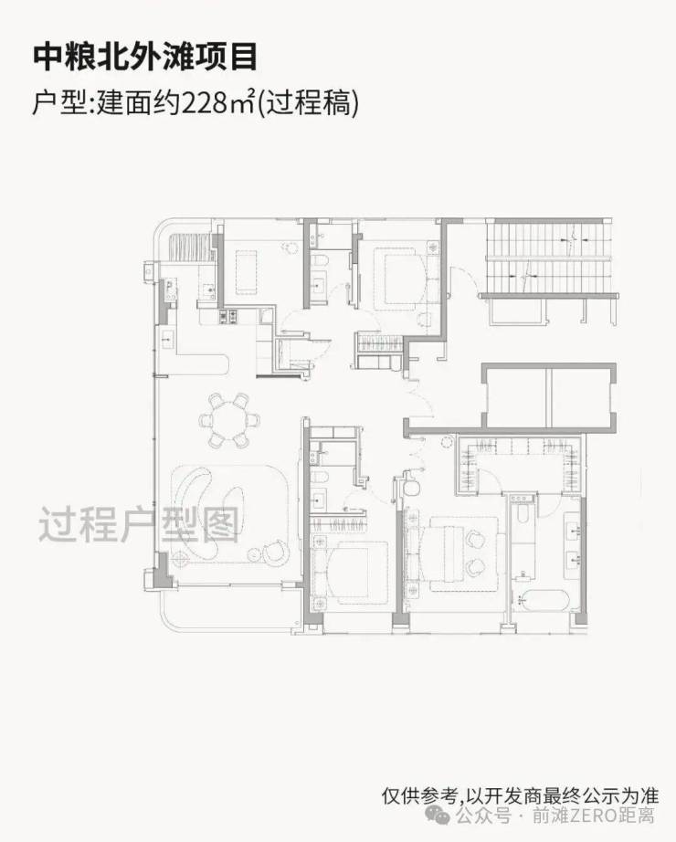 【中粮·北外滩壹号】 即将入市的高层户型建面约185-228㎡纯粹4房,尺度感相当奢阔!高层户型均为两梯两户独立电梯厅配置,隐私性与尊崇感拉满!