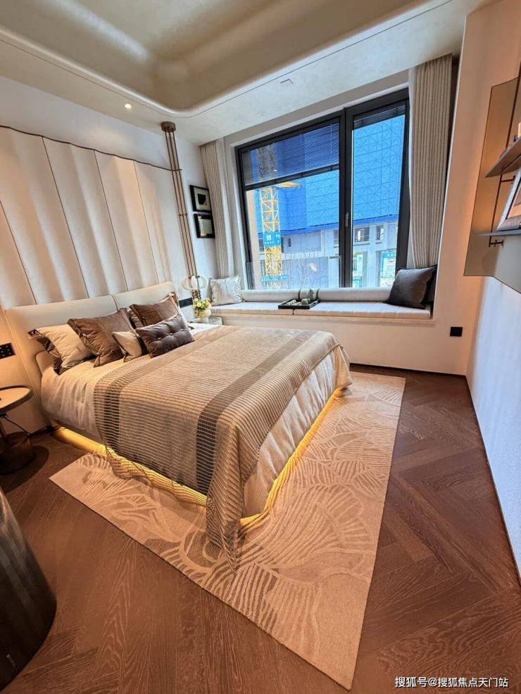 项目部分户型的主卧不仅有约270度无柱飘窗,甚至还有户型做到了上海首个最大连续约12米无柱化设计的全景舱户型!