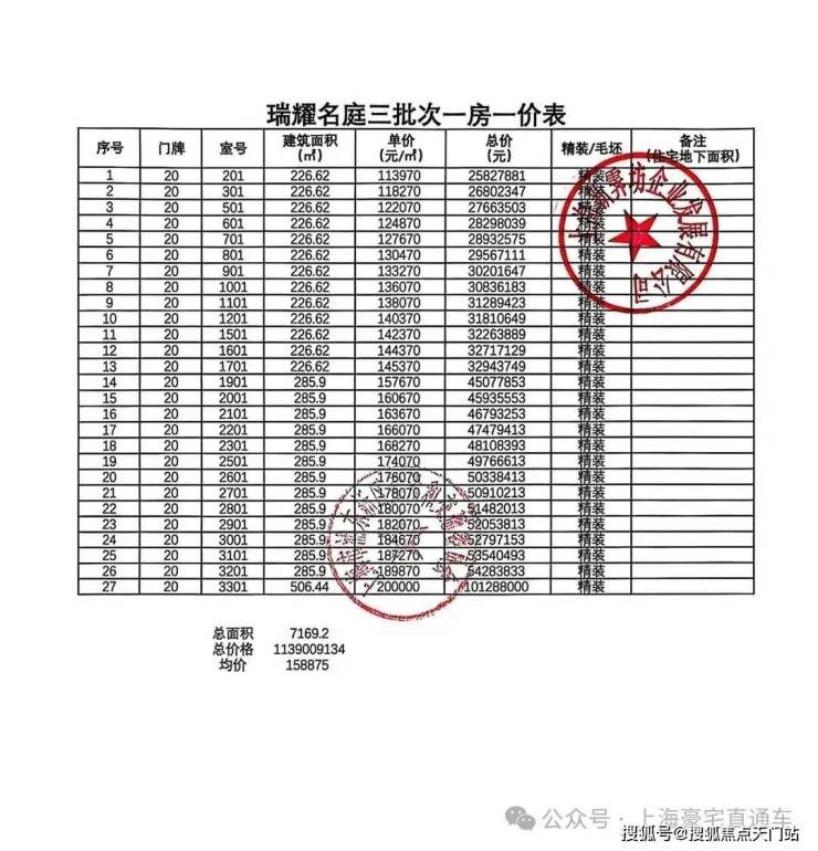 二批次一房一价表: