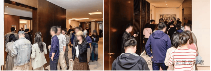 沙盘区宾客如云,洽谈区座无虚席,样板房里置业顾问与客户聊得热火朝天,甚至楼下都大排长龙!