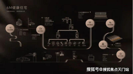 全屋配置6M健康智能住宅系统。这个智能系统系统涵盖降噪、净水、除湿、恒温、安智等多方面: