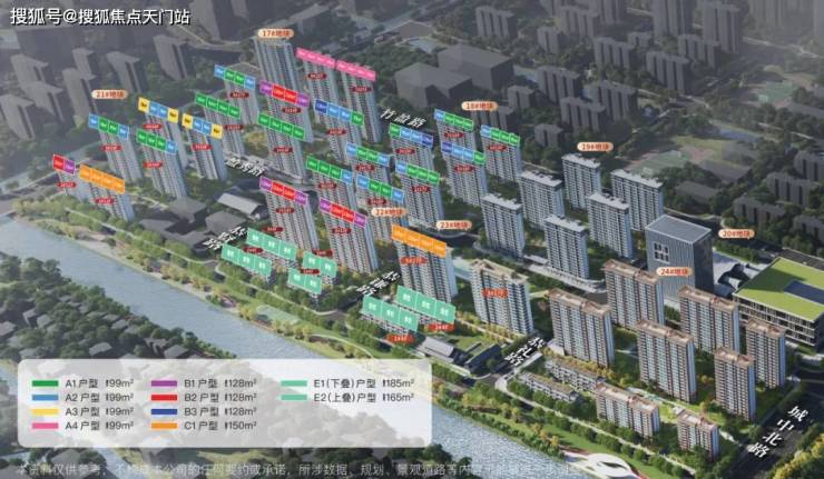 户型:主推三室两厅一卫(99m²)、四室两厅一卫(125m²),还有建面约98㎡、147-171㎡等多种户型