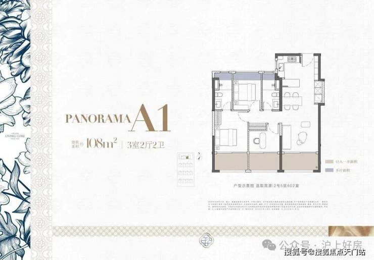约108㎡户型:三开间朝南阳台,上海中环绝版配置!彻底粉碎百平三房“牺牲舒适换功能”的魔咒:南向次卧原本稍显局促的空间,因南向阳台的拓展实现质的飞跃,轻松容纳1.8米大床及床头柜,舒适度倍增。