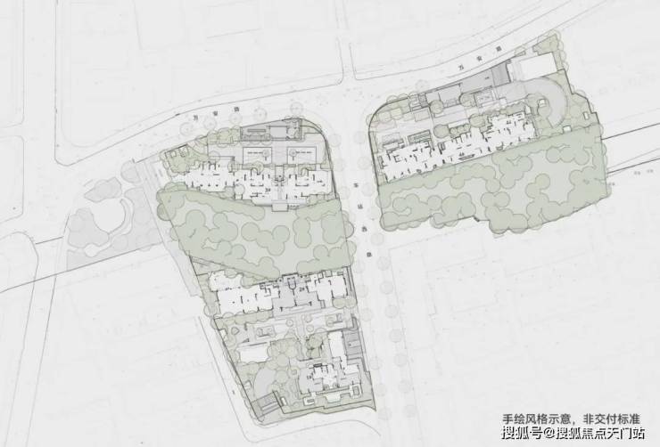 项目通过「柔化边界·城市渗透」的设计手法,以城市微更新的理念,对土地的原生肌理进行有机缝合与编织,借三个地块间的绿轴做自然拼接,构建一轴三园的空间结构,重建家与附近的情感链接。