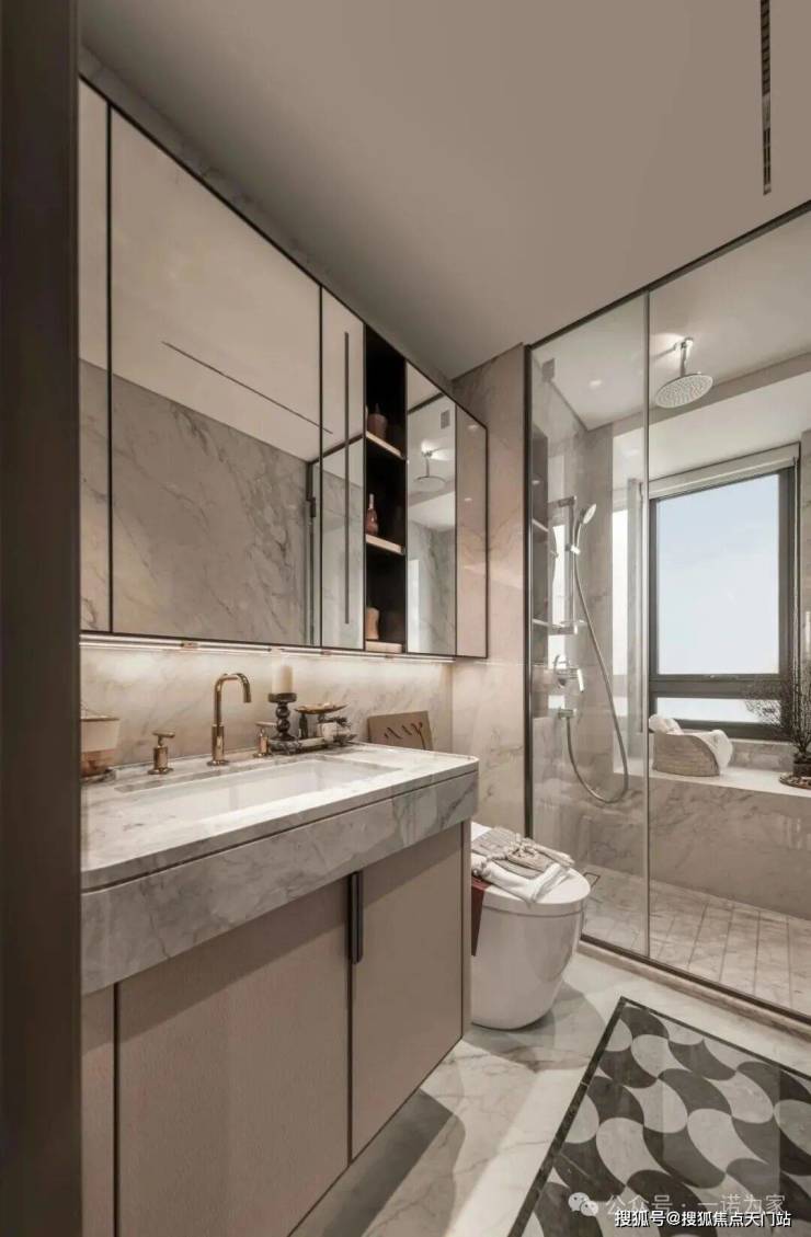 又如卫生间干湿分离,镜柜自带置物架与美妆冰箱,护肤品有序冷藏,晨起焕新更显精致。可以说,这套户型用隐形收纳艺术,成为百平内功能型三房的优选!