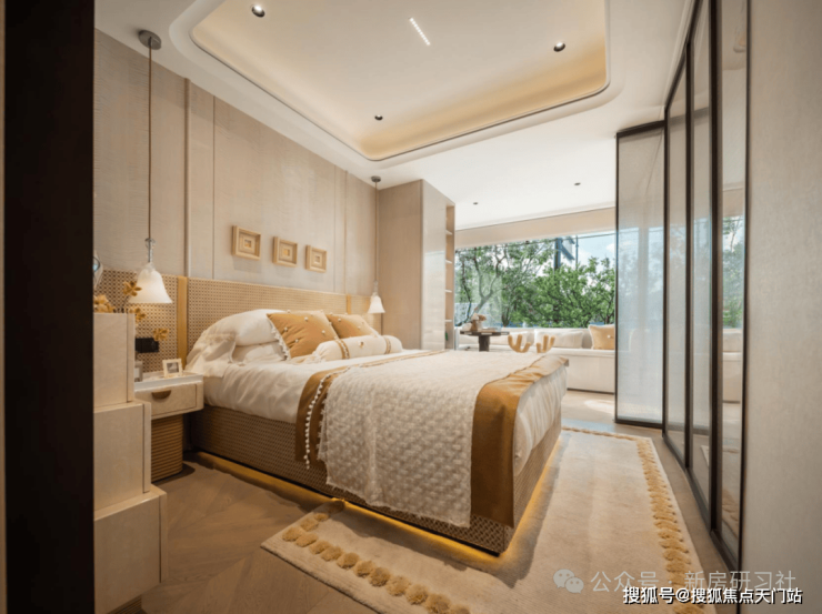 结合局部 弧形玻璃 与 超大窗墙比 ,真正实现了“引景入室”,让家变成公园的观景台,重新定义了居住的视野界限。