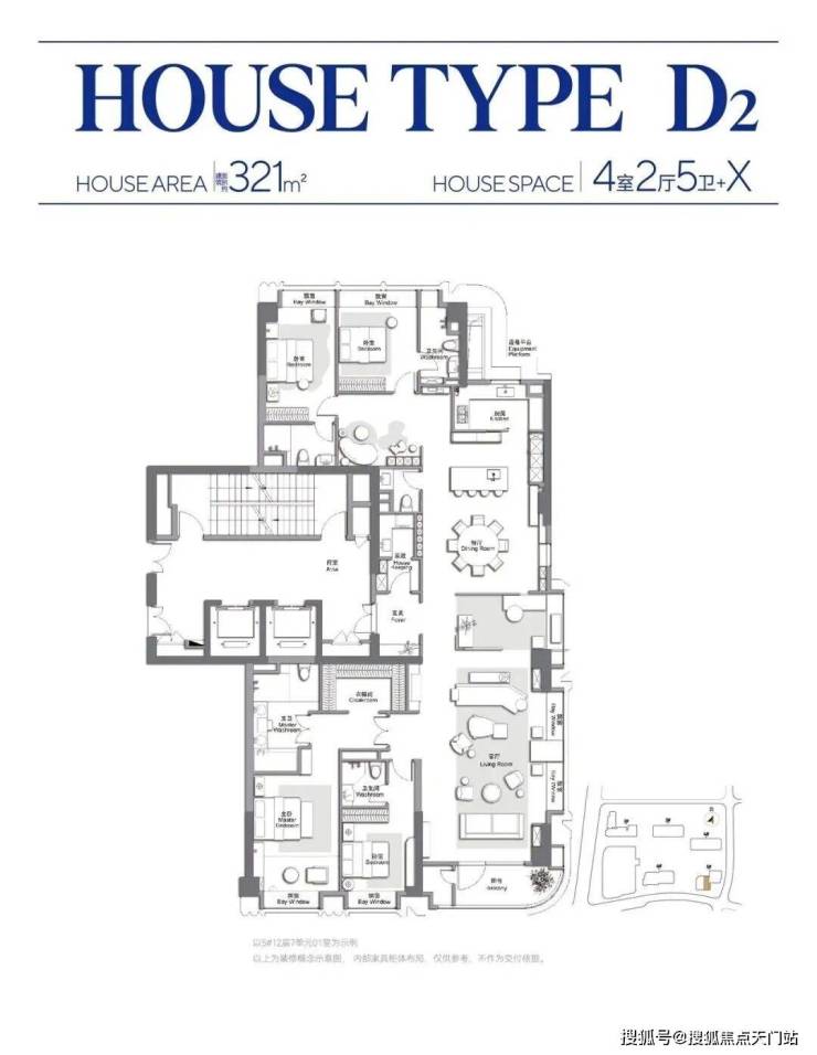 高端品质:由17家国际事务所联合设计,公区采用全进口石材铺设;室内配备嘉格纳四件套、劳芬卫浴等高端品牌洁具,装修标准对标豪宅水准。