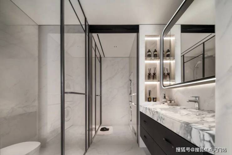 主卧套房的L型衣帽间与卫生间,公卫四分离设计 ,在保证“大”尺度的同时,更让每个人的生活需求都被妥帖照顾。