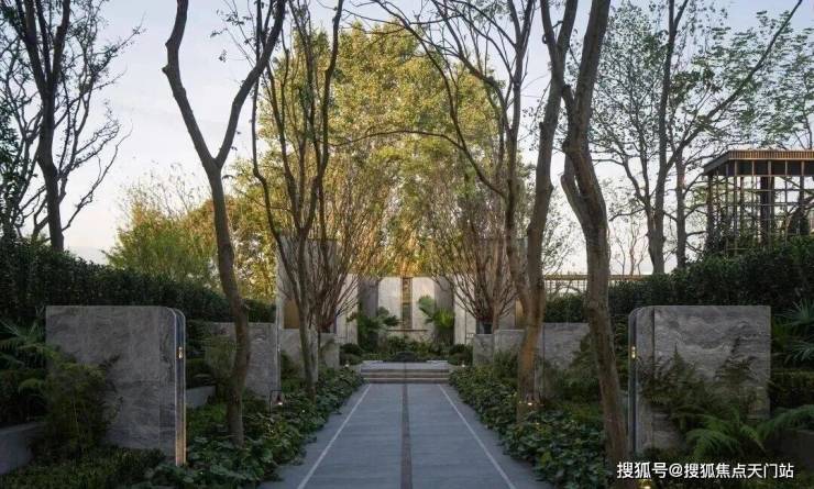 借鉴 思南公馆 经典的 三重归家礼序 , 项目巧妙利用原始地形打造拥有约 2 米高差的归家台地,特别设计 " 三升九阶 " 的三段式台阶,寓意"步步登高、层层递进、终臻圆满"。