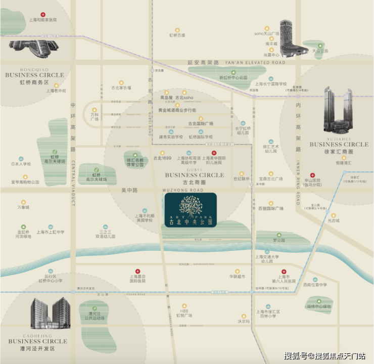 🏥医疗配套:项目周边分布着众多综合医院——上海市第六人民医院,上海伽玛医院、上海中医药大学附属光华医院,距离项目约4.5公里左右还有高端私人医院上海和睦家,为社区的居民的健康提供保障