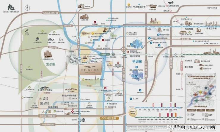 合心规划 产城样板:【“科创+人文+生态”城市单元示范】华发海上都荟首入松江,携崭新“优+产品体系5.0”,为洞泾、乃至为松江带来目前区域内综合高品质作品。结合上海生态环境保护“十四五“规划,站位国际领先的可持续性项目规划,华发海上都荟结合自身的独特聚合优势,在传统TOD规划之上,不可复制的土地生态资源,向东链接G60科创走廊“以镇命名为区块”洞泾人工智能产业基地;向南直达亚洲大学城之一——松江大学城;北侧紧连上海陆面自然山林资源——佘山国家旅游度假区。板块将区域打造成为“科创+文教+生态”交汇的核心新城模式,划立一个崭新的城市单元示范。