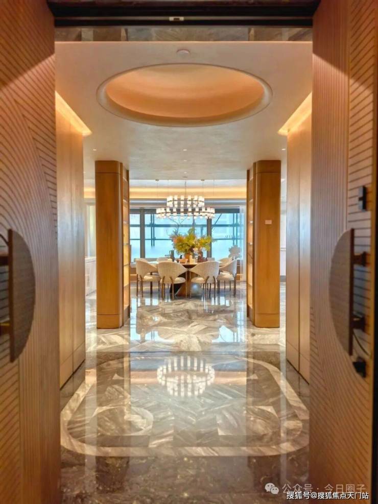 万科中興傲舍凝聚72种高端豪宅都难得一见的奢材,如皇家白奢石、Prada绿皮革面奢石、砖纹定制铝板等等,每一处细节都透露出精致与考究。