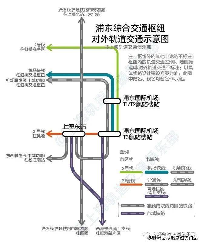 除了航班与公交,大家最为关心的轨道交通,浦东枢纽规划 “5条市域线+2条市区线”布局方案: 机场联络线、两港快线、东西联络线、机场快线、沪通线,2号线、21号线。