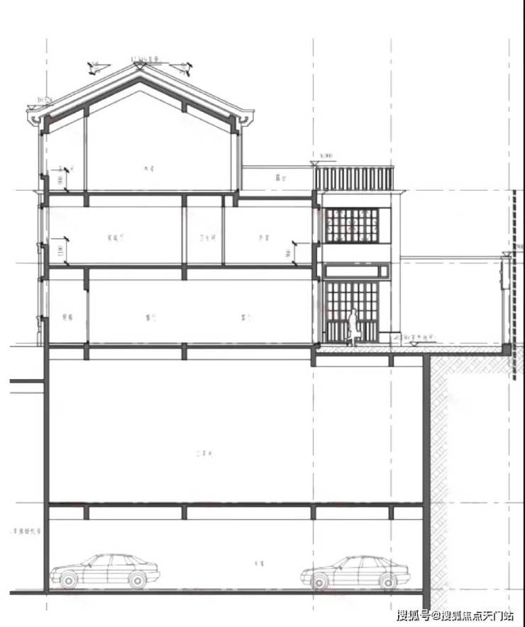 小区的2号楼别墅为双拼,东边套为地上1-2层外加阁楼。建造风格应该也是新里弄的石库门样式了,看看下面的剖面图就知道了: