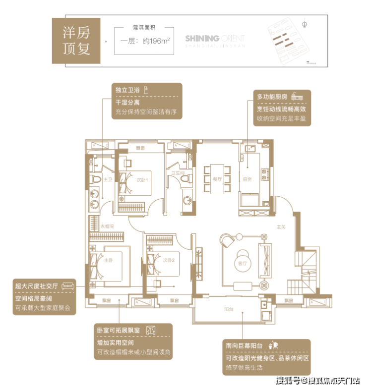 洋房顶复:建面约196㎡