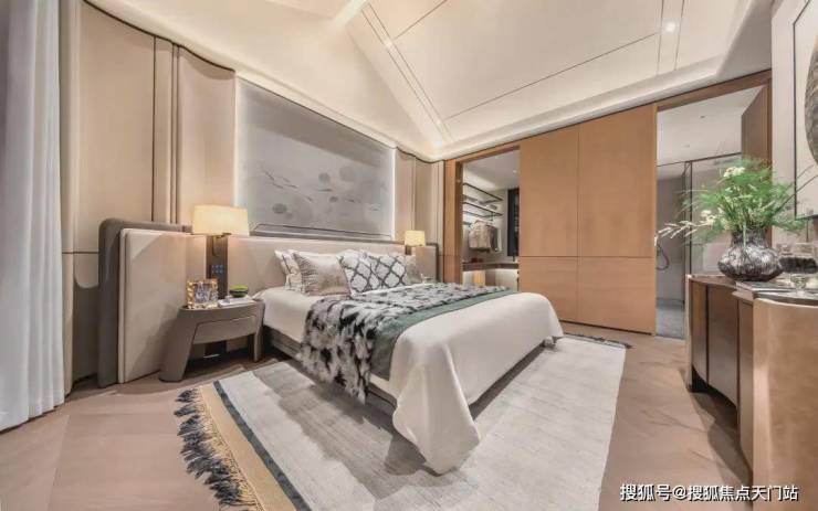 一层主要作为会客功能。样板间将一楼书房空间打开,与餐厨空间相连,更显空间感,推门就可独赏自家院中美景。还贴心设计了一个父母房,方便老人起居。