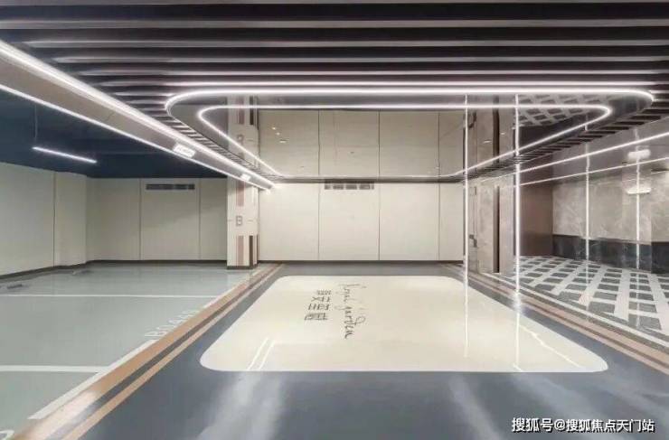 车库公区方面,项目采用贯穿式鱼尾灯坡道和超耐磨地坪,过道全部是精装吊顶,地下管道和局部区域进行二次包裹。