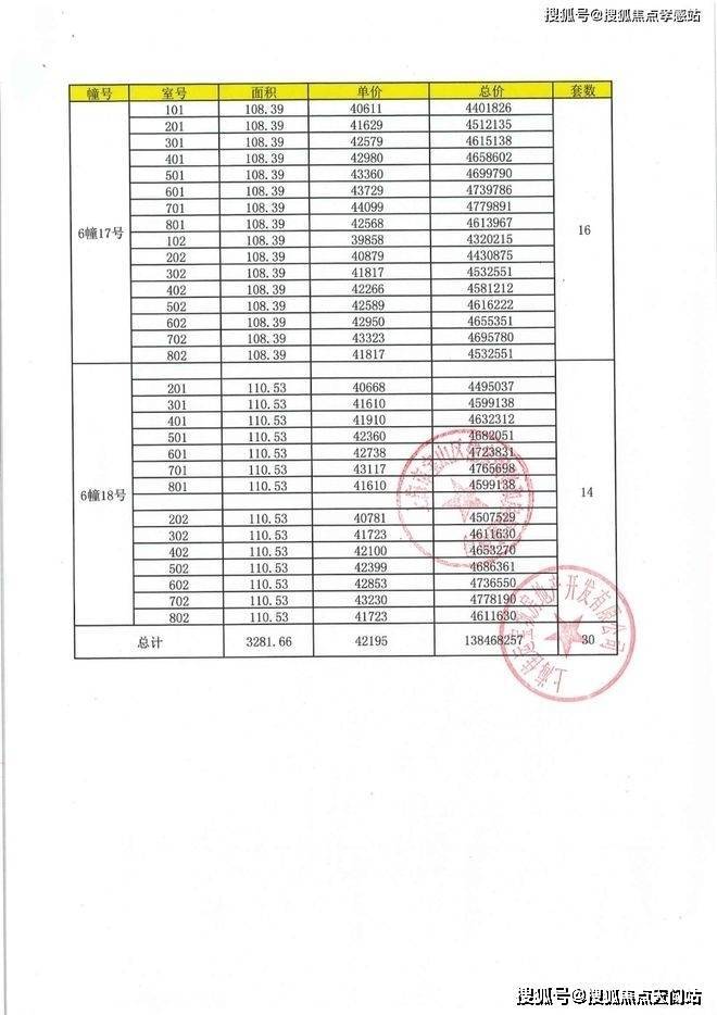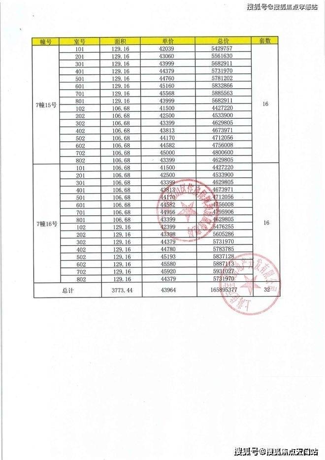 一房一价表: