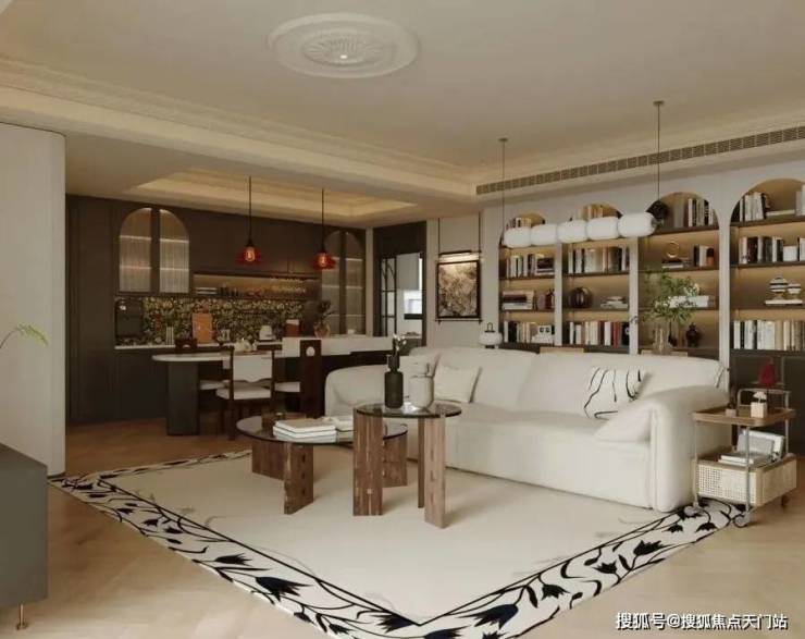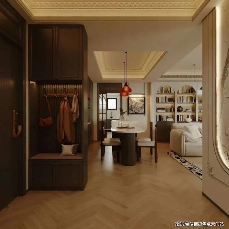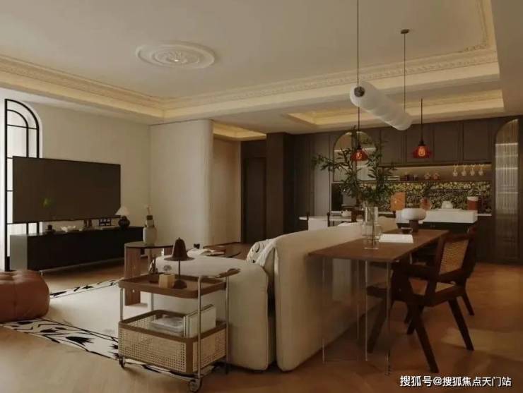 户内楼面高度不一致,错开之处有楼梯联系。但没有完全分为两层。(适合大面积住宅,小户型会显得局促)
