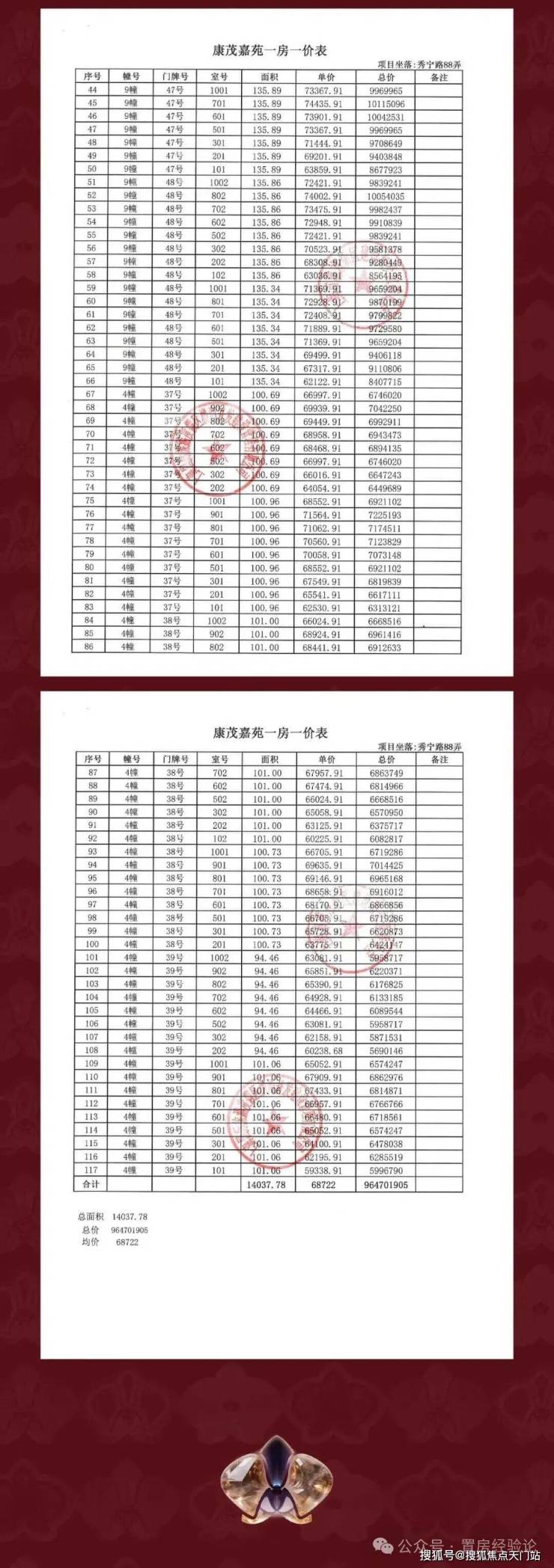 一房一价表: