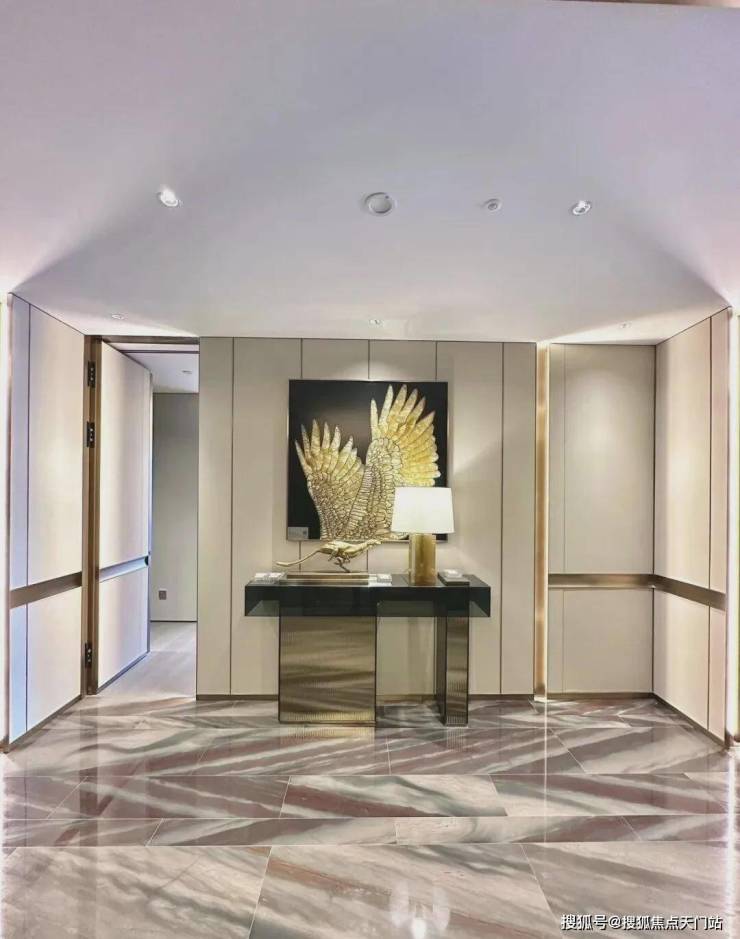 比如采用奢石静雅棕石、雪山银狐石、月光白石、挪威木纹石等石材;