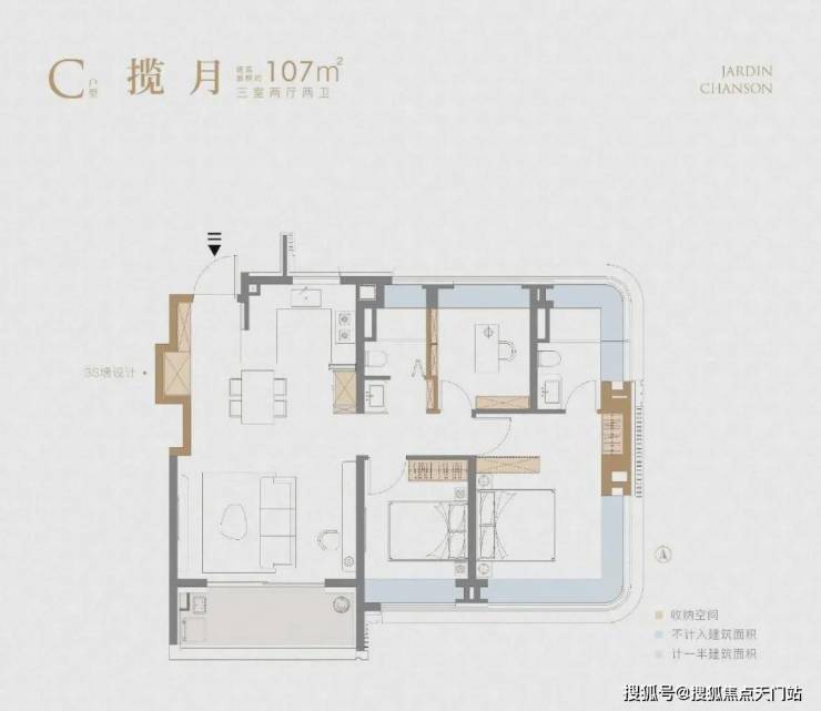 不夸张的讲,这个 建面约107㎡刷新了我对百平三房的新认知,据悉该户型或将申请专利,我认为实至名归!