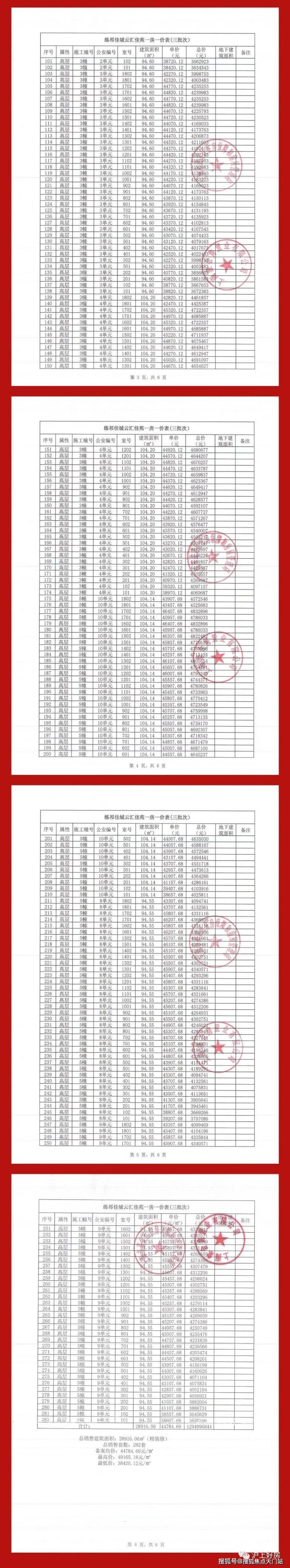 附一房一价表: