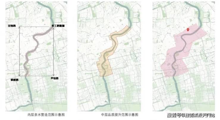 结合滨水空间特点和功能导向,将规划空间范围细分为三个层次,即: