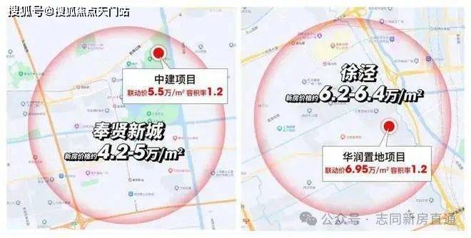 比如徐泾板块新房均价普遍在6.2-6.4万/㎡,而容积率1.2的华润项目就是能达到6.95万/㎡。再比如奉贤新城均价普遍在4.2-5万/㎡,而容积率1.2的中建项目联动价高达约5.5万/㎡。