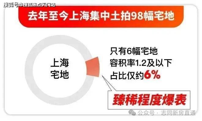 去年至今,上海集中土拍合计98幅宅地,容积率1.2及以下的宅地只有6块,占比仅约6%!臻稀程度爆表!