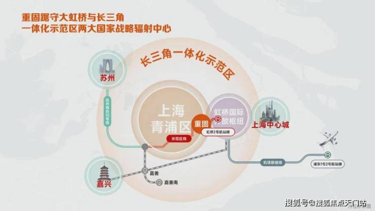 重固,是链接虹桥商务区、青浦现代新城、长三角一体化示范区等战略规划重点节点,在大虹桥3.5倍扩容契机下,由原来“大虹桥辐射区”强势晋级为“大虹桥商务区”,完成从“辐射地带”到“发展主场”的能级飞跃。