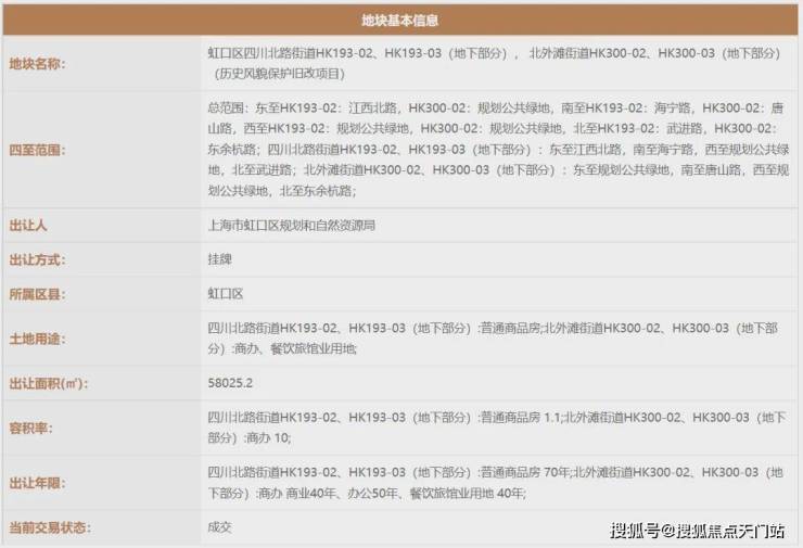 2021年2月,上海虹口城市更新建设发展有限公司(上海地产联合体)以 111.35亿拿下了 虹口区四川北路街道HK193-02(17街坊弘安里)、HK193-03(地下部分);北外滩街道HK300-02、HK300-03(地下部分)(历史风貌保护旧改项目)。