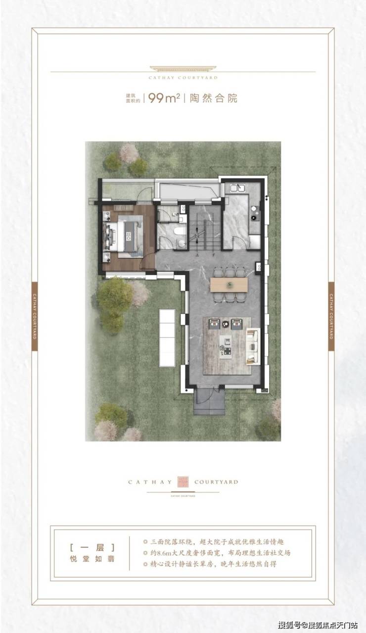 【泰禾·海上院子】以院落空间为中心, 270°三面环绕,围合式布局,自然恣意流淌,花木繁盛,有序共生,形成动静皆风景的多重私享。