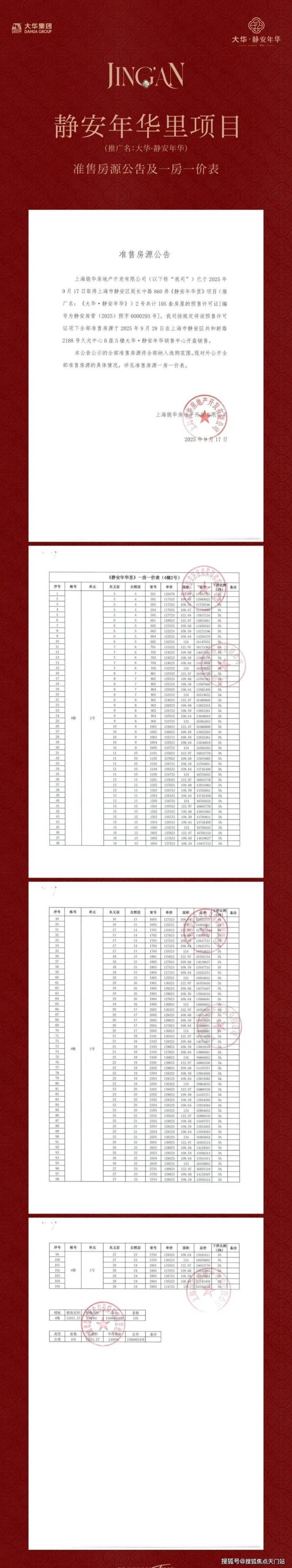 大华静安年华一房一价表: