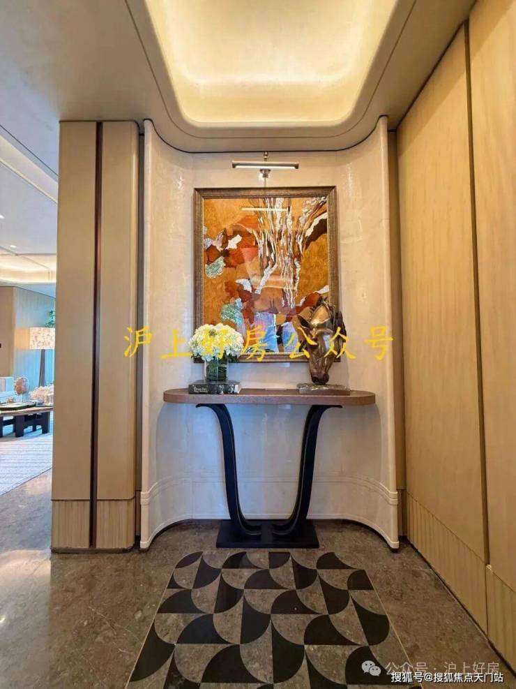建面约190㎡ C户型,两梯两户,私享梯厅,家的玄关尺度,延伸至电梯厅,增加实际使用面积。入户处大师定制瓷板门牌画,私属感满满,打造专属归家仪制。