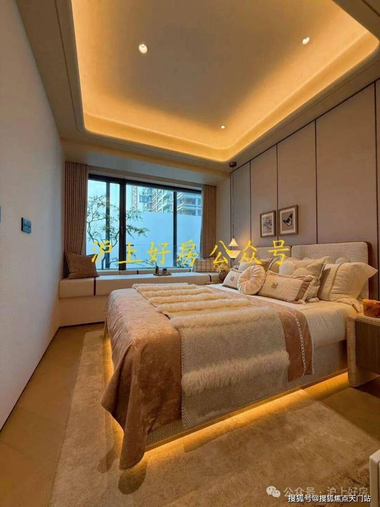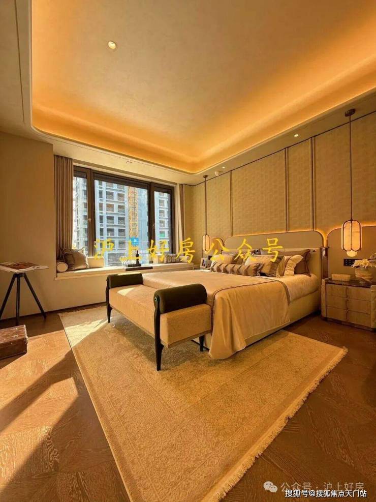 项目部分户型的主卧不仅有约270度无柱飘窗,甚至还有户型做到了上海首个最大连续约12米无柱化设计的全景舱户型!