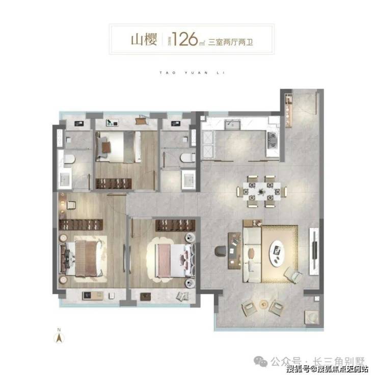 主力户型为建面约83-179㎡的2-4房,南北通透,全屋飘窗设计,采光通风极佳。例如126㎡三房两卫户型,三开间朝南,得房率78%-82%。『中环桃源里』售楼处电话:400-118-3159√√【热线】