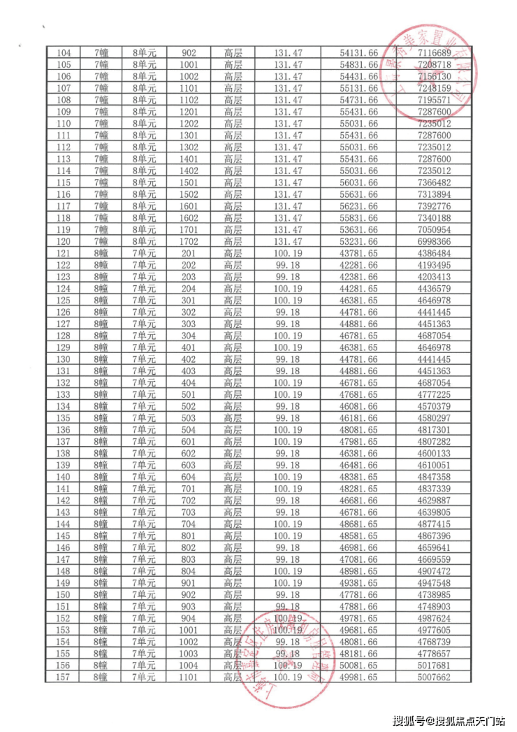 完整一房一价表如下: