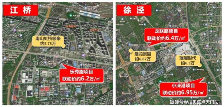徐泾小涞港项目,房地联动价约6.95万/㎡,该地块同板块同类型产品为约6.87万/㎡的蟠龙景园,与其相较上调约800元/㎡。