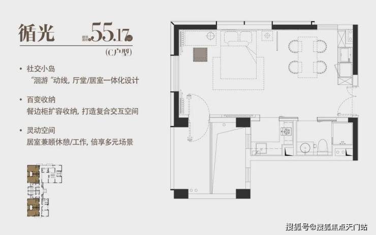 建面约55.17 m²|一室一厅一厨一卫