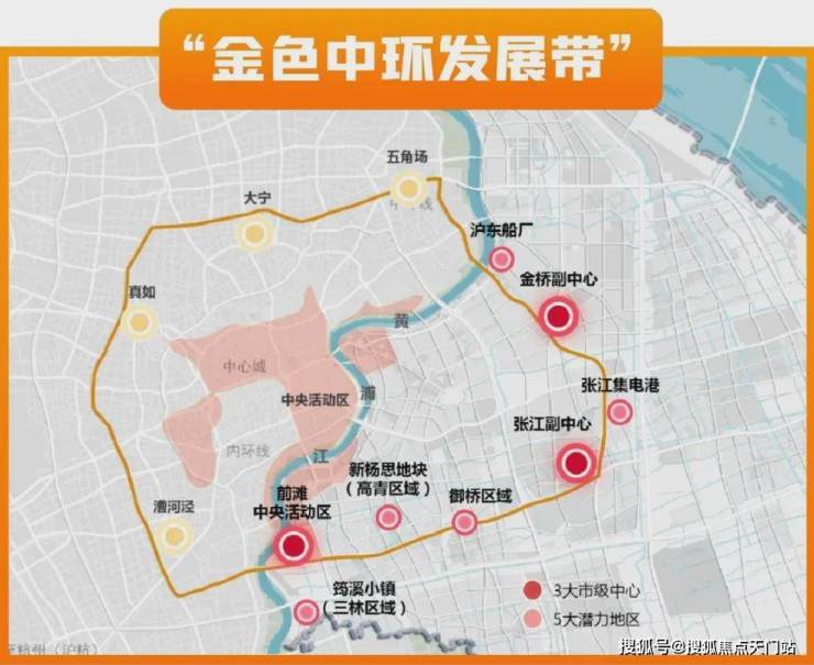 其中,金桥副中心与前滩、张江,组成了金色中环带上重要的三大城市中心。