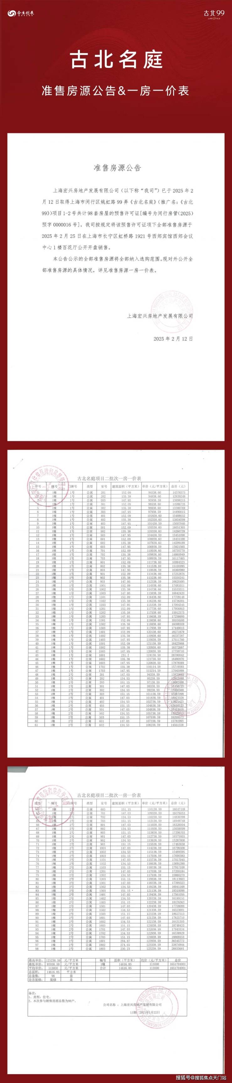 最新消息,古北99 火爆认购啦!古北准现房!约133-154m²2-3房,单价94000/平!最新一房一价表!