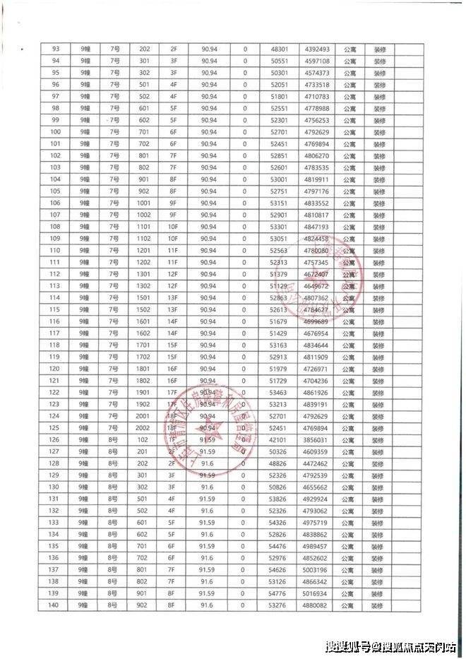 一房一价表如下