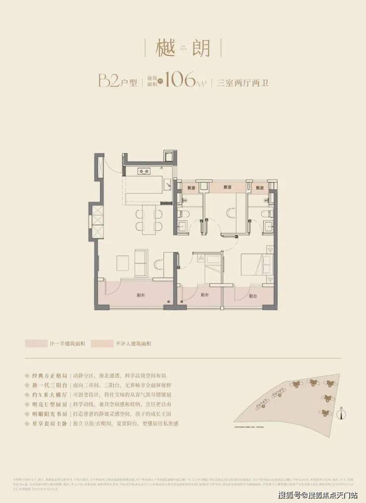 大华望樾的高层建面约94㎡户型做到了三阳台的配置;
