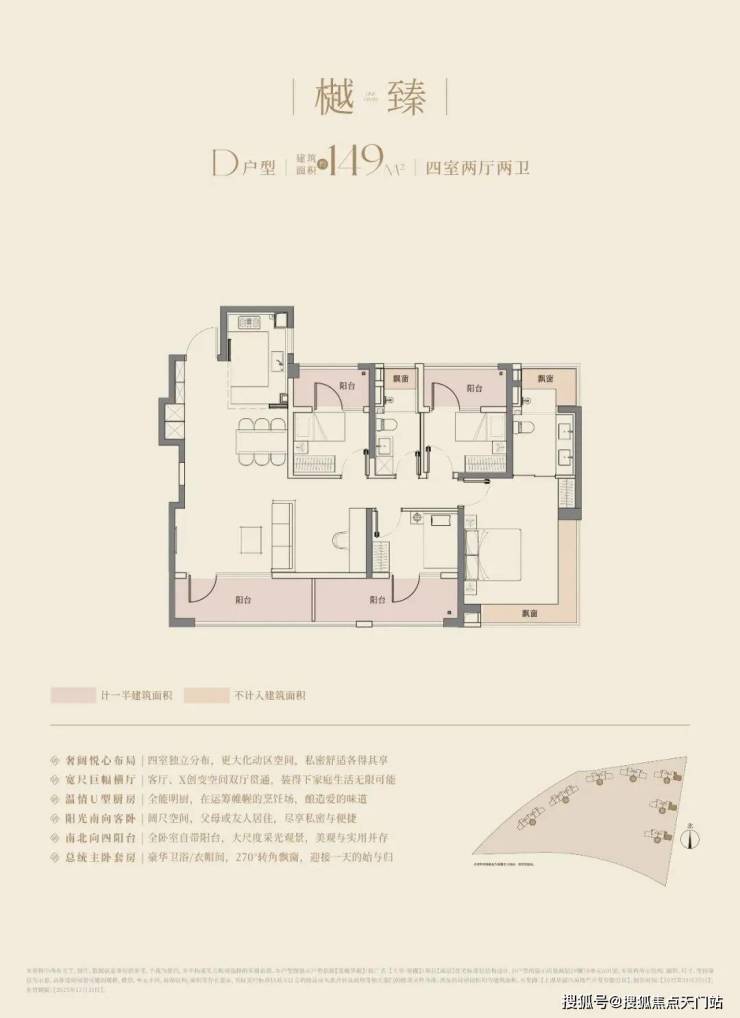 建面约148㎡户型更是做到了惊人的四阳台配置,远远超过新规标准。