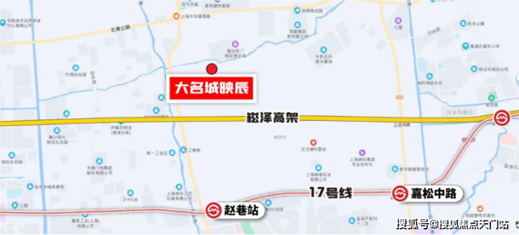 此外,从「大名城映辰」出发,乘坐17号线往西7站直达青浦华为研发中心,对于华为上班的科创人士,也是非常友好。