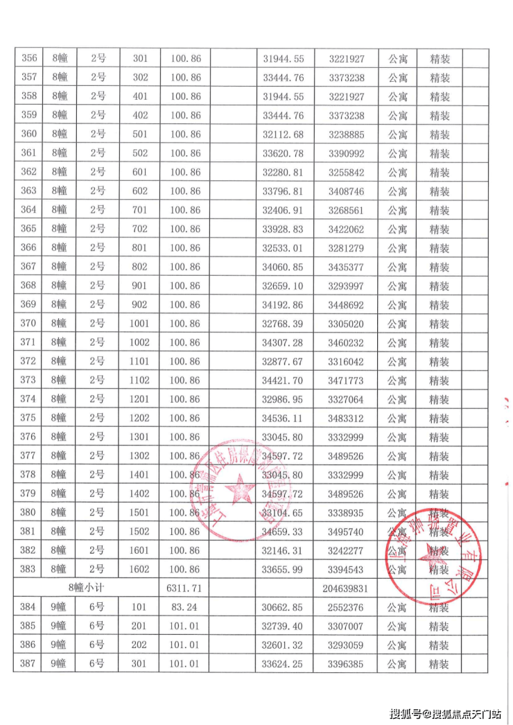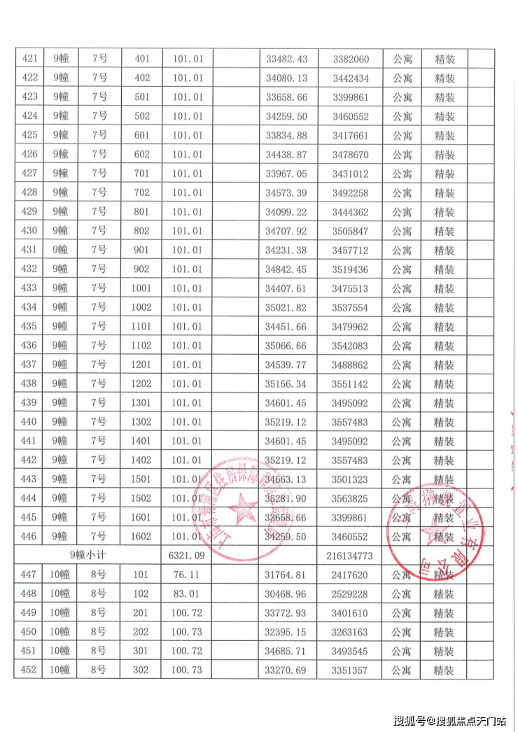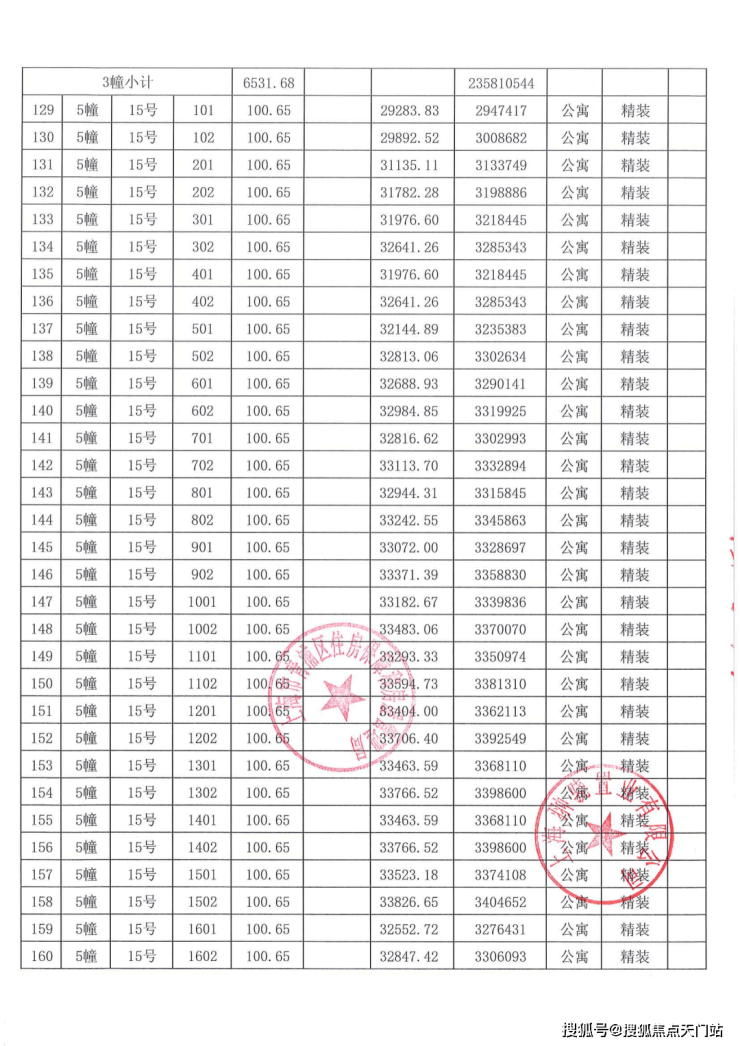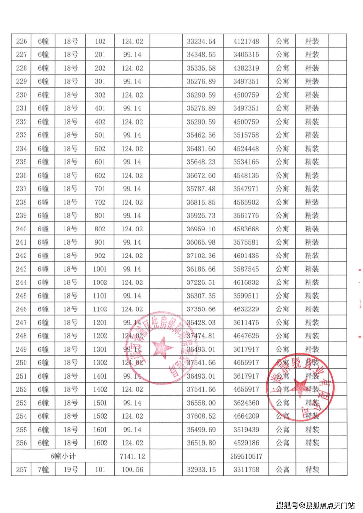 一房一价表