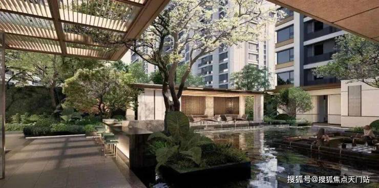 社区入口,百米酒店式落客门庭、超60年树龄铁冬青打造的“大树聚场”、潘多拉发光奢石拼花的 “躺平水院”,是家人休憩、邻里小聚的好去处;