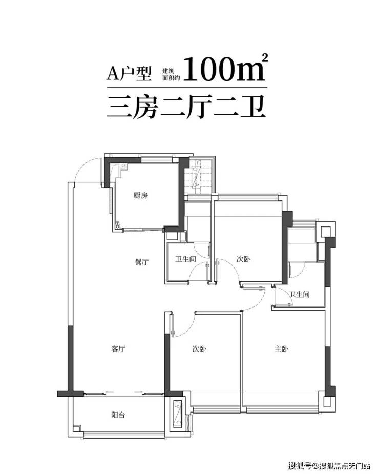建筑面积约100㎡雅致三房两卫,满足二娃时代;